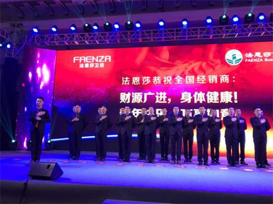 ▲法恩莎衛(wèi)浴銷售部團(tuán)隊(duì)展示環(huán)節(jié),常懷感恩之心,感恩過(guò)去一年全體經(jīng)銷商們的付出與努力。
