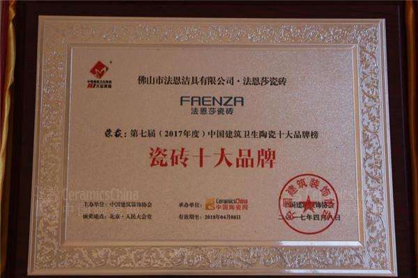 \u00A0 \u00A0 本屆大會揭曉了歷經(jīng)四個月品牌調(diào)研與網(wǎng)絡(luò)互動,2017年度(第七屆)中國建筑衛(wèi)生陶瓷十大品牌榜最終在人民大會堂集體亮相,包括陶瓷十大品牌、衛(wèi)浴十大品牌、瓷磚十大品牌、陶瓷一線品牌、大理石瓷磚十大品牌、拋光磚十大品牌、微晶石十大品牌、仿古磚十大品牌、木紋磚十大品牌、瓷片十大品牌及年度科創(chuàng)品牌獎等11項行業(yè)最高榮譽。大會分別向入選品牌頒發(fā)榮耀,向建陶行業(yè)標桿品牌加冕,在建陶行業(yè)深度調(diào)整之際,探索并賦能于產(chǎn)業(yè)的創(chuàng)新升級,實現(xiàn)中國建陶的轉(zhuǎn)型升級。