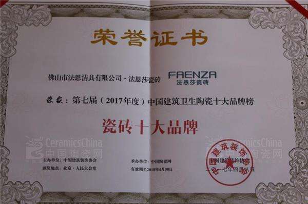 \u00A0 \u00A0 法恩莎瓷磚作為樂華集團旗下的高端品牌,全線采用意大利、西班牙等全球先進的制陶設(shè)備及工藝標準,精選原料,不斷的技術(shù)創(chuàng)新,力為締造時尚瓷磚精品。作為中高端時尚瓷磚品牌,法恩莎瓷磚以不斷自我提升和創(chuàng)新的精神,引領(lǐng)著瓷磚領(lǐng)域的時尚潮流,為全球消費者提供唯美、藝術(shù)、優(yōu)雅的時尚家居生活空間。