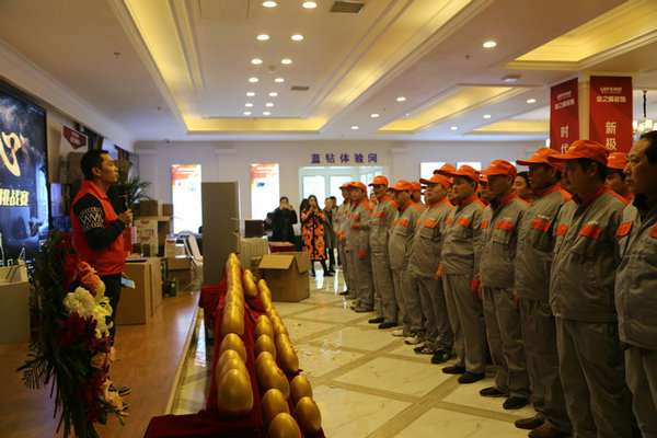 啟動(dòng)儀式上,副總經(jīng)理李君堯先生對(duì)大賽進(jìn)行工程團(tuán)隊(duì)動(dòng)員并向大賽吹響號(hào)角。監(jiān)理、項(xiàng)目經(jīng)理、工長(zhǎng)及工人代表紛紛上臺(tái)表態(tài),嚴(yán)格要求自己,賽出風(fēng)格,賽出水平。后工程部經(jīng)理?xiàng)钴娤壬鷰ьI(lǐng)工程團(tuán)隊(duì)人員集體宣誓。