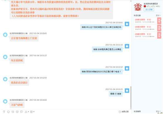 生活家專業(yè)地回答質(zhì)保和售后安裝服務(wù)問題總的來看,除天貓家裝售后政策外,地板企業(yè)電商在銷售、安裝、售后等內(nèi)容建設(shè)方面較為充實詳細(xì),電商服務(wù)質(zhì)量上升快,但在具體落實方面還存在不足,個別企業(yè)在服務(wù)過程中回復(fù)不夠負(fù)責(zé),對詢問者提出的產(chǎn)品資訊、質(zhì)保安裝等問題并未解決,而是讓其咨詢門店,電商服務(wù)與線下服務(wù)通道之間不暢通。