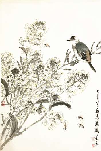 I-作品《春至花香》參加首屆全國中國畫學(xué)術(shù)大展。[中國畫學(xué)會]