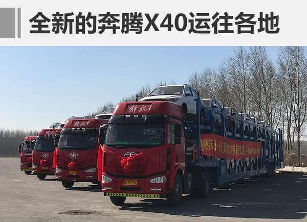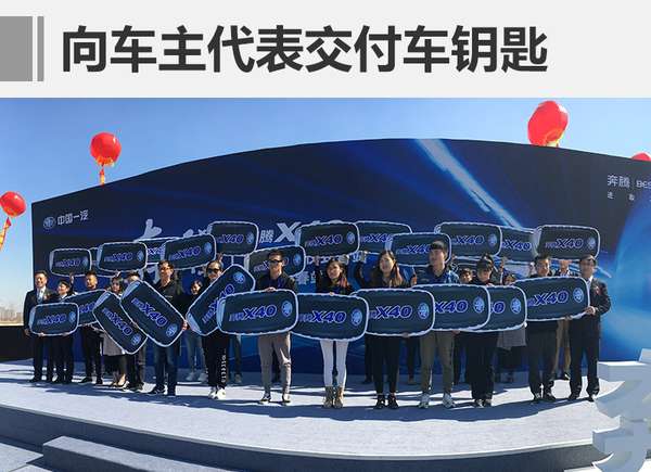 一汽轎車銷售有限公司總經理崔大勇和副總經理郭平將奔騰X40的車鑰匙交付到來自全國六大區域的車主代表手中。隨后由解放卡車運載的奔騰X40新車從一汽工廠駛出,運往全國各地經銷店。下面請看更多詳細信息。