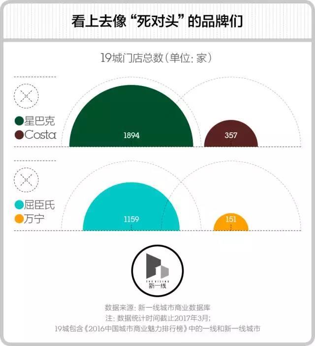 看到這里你是不是會想要提醒新一醬漏掉了兩對重要的對手品牌呢?恩,星巴克vsCOSTA,以及屈臣氏vs萬寧是吧?