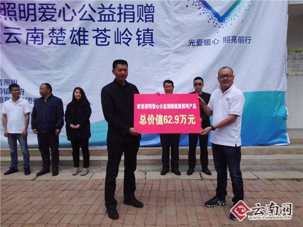 4月7日下午,歐普照明新農(nóng)村房屋燈光改造暨愛心公益捐贈儀式在楚雄彝族自治州楚雄市蒼嶺鎮(zhèn)西云完小舉行。在此次捐贈活動中,楚雄市蒼嶺鎮(zhèn)358戶870名貧困群眾和1457名在校學生收到了歐普照明捐助的燈管、燈泡、吸頂燈、臺燈等總價值近63萬人民幣的7725個燈具。