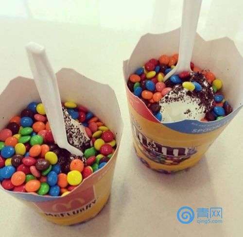 外國(guó)人愛(ài)吃甜,這不需再贅述。他們總能想到各種甜+甜的疊加做法,用甜蜜滋味徹底腐蝕你的味蕾。在圣代里加巧克力碎和mm豆,這夠甜蜜吧?