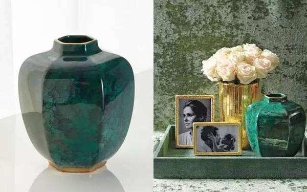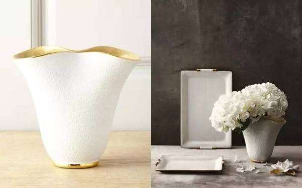 Aerin的花瓶在數量并不算太多的家居單品中占據了不小的席位。大多數花瓶都是純色、沒有任何圖案的,但在形狀的塑造上卻下足了功夫。另外從鑲邊、紋理的處理等細節處也可以看得出來每款花瓶在設計上的用心。