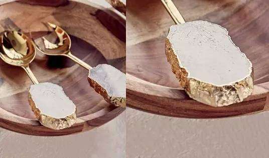 ANNA by Rab Labs的餐具給人的第一印象就是熠熠生輝。因為取材于大自然,所以即便是同款也會因為紋路不一樣而不盡相同。雖然價格不算便宜,但這么精致貴點也值了。