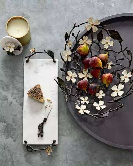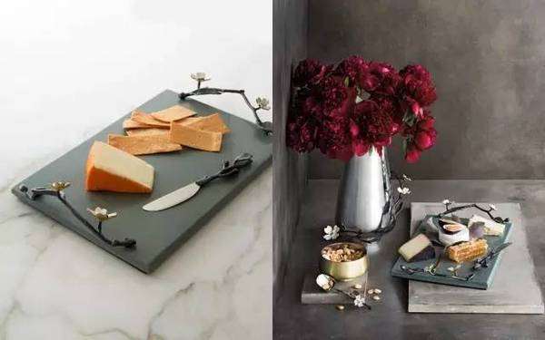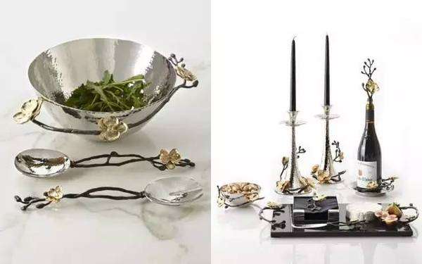 Michael Aram設計的餐具每個系列都會有獨樹一幟的立體花朵、立體樹枝形象或纏繞著的葉脈作為點綴,這些餐具好像有一種能讓最平常的飯菜都變得無比可口的魔力。
