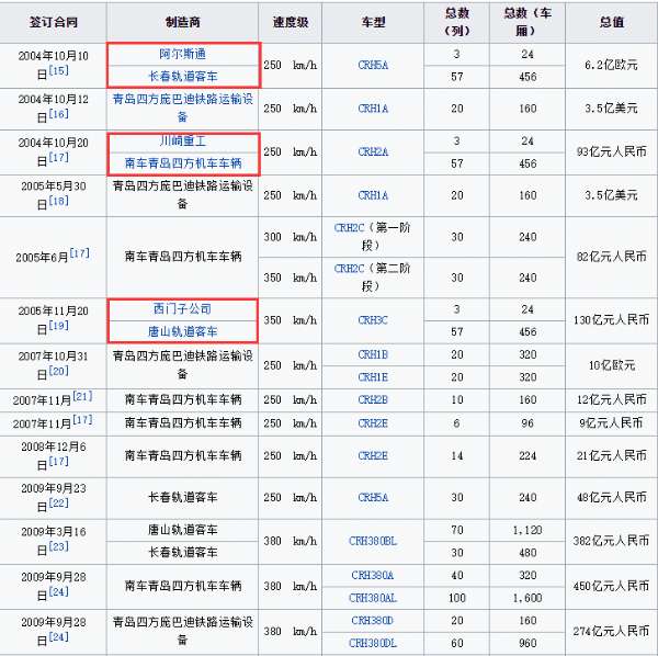 鐵道部在2004年同時(shí)向當(dāng)時(shí)全球高鐵四大巨頭:德國(guó)西門子、日本川崎重工、法國(guó)阿爾斯通和加拿大龐巴迪發(fā)出了邀請(qǐng),表示對(duì)購(gòu)買其高鐵產(chǎn)品和技術(shù)“感興趣”。