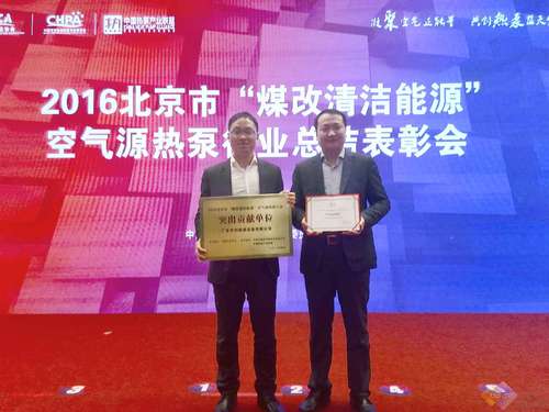 為表揚先進、樹立典型,進一步保障2017年“煤改清潔能源”工程的順利實施,由北京市農委指導、中國節能協會主辦的2016年北京市“煤改清潔能源”空氣源熱泵行業表彰儀式于4月10日在北京遠望樓賓館隆重召開。其中,美的中央空調憑借著優異的表現,在第一輪獲獎企業中以第一名的成績榮獲“突出貢獻單位”大獎。