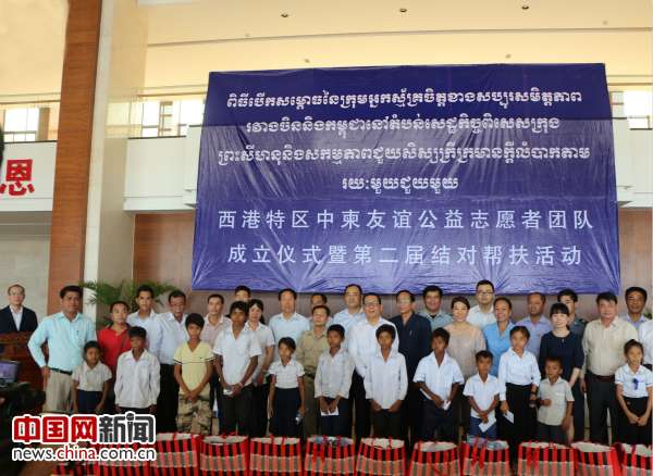 西港特區公司成立中柬友誼公益志愿者團隊,開展結對幫扶活動。圖片由紅豆集團提供。