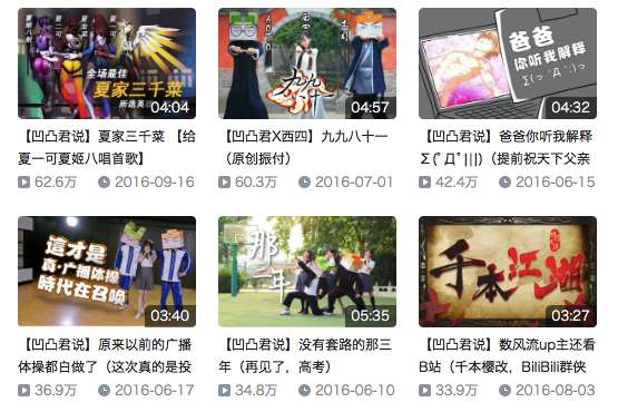 (《凹凸君說》在B站上的部分節(jié)目)