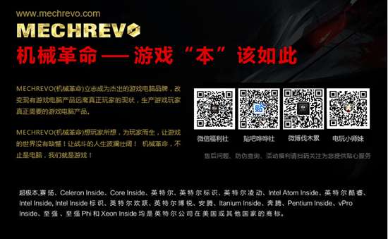 機械革命(MECHREVO)將引領(lǐng)一場游戲電腦領(lǐng)域的變革。想玩家所想,為玩家而生,讓游戲的世界沒有缺憾!讓戰(zhàn)斗的人生波瀾壯闊!機械革命,不止是電腦,我們就是游戲!