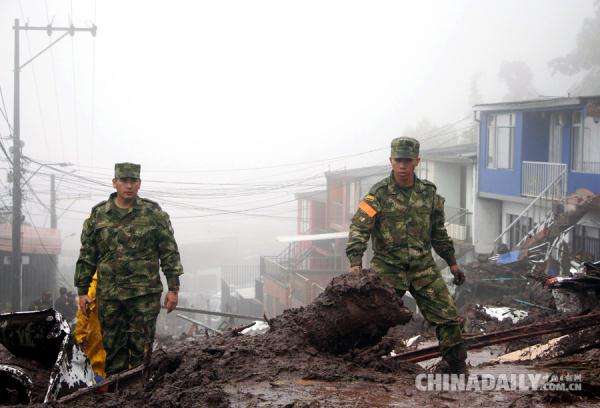 4月19日,在哥倫比亞中部卡爾達(dá)斯省馬尼薩萊斯市,士兵在泥石流災(zāi)害發(fā)生地清理現(xiàn)場(chǎng)。