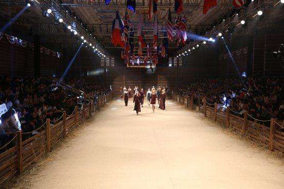 被原木搭起來(lái)的馬場(chǎng),金黃的稻草隨性的臥在秀場(chǎng)的各個(gè)角落,秋天的氛圍馬上不期而至。被郁香菲秋裝新品包裹的模特們開(kāi)始聘婷的游走于光影的變幻中。開(kāi)衩的裙擺勾勒出優(yōu)美的腿部曲線,拼接的工藝讓假兩件裙裝擁有了更豐富的層次感,廓型風(fēng)衣簡(jiǎn)潔大氣的裁剪盡顯歐美范……不同品類的演繹展示出了郁香菲2017秋裝獨(dú)特的魅力。