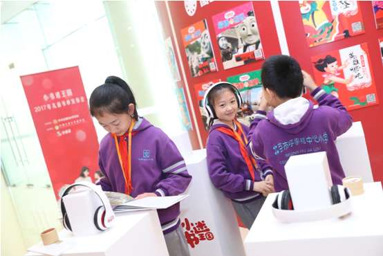 “小書(shū)迷王國(guó)2017年兒童書(shū)單發(fā)布會(huì)””上,兒童代表現(xiàn)場(chǎng)體驗(yàn)有聲故事