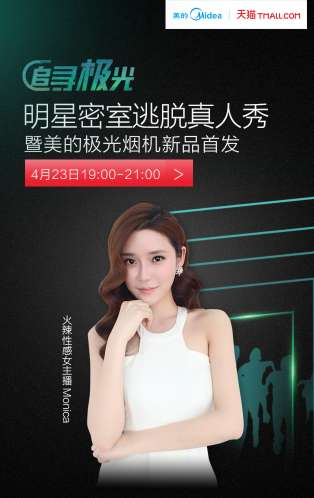 4月23日19:00---21:00,美的廚房電器將把“極光”藏匿于一間機關重重的密室中,邀請奧運顏值CP及2大網紅擔當,在美的廚房電器天貓直播間/一直播平臺(名稱:美的廚電 ID:77910409)/映客三平臺同步直播密室逃脫挑戰的全過程!參與直播將會送出30臺美的烤箱+20臺美的吸塵器!千萬不要錯過這檔誠意與趣味同在的燒腦直播!