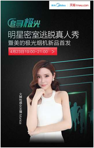 火辣性感女主播Monica亮點四:美的廚房巨資打造密室,驚險刺激又燒腦 “追尋極光”的密室由美的廚電斥巨資傾力打造,酷炫逼真的場景、刺激燒腦的機關,并且在游戲中完美融入美的極光煙機的最新技術,神秘十足。飄渺、神秘的極光就藏匿于機關重重的密室中,要求玩家經歷重重考驗,“集齊5個彩瓶,打開極光”,才能成功逃脫密室。絕對是暴露智商、情商的一個游戲,想想就覺得很刺激。