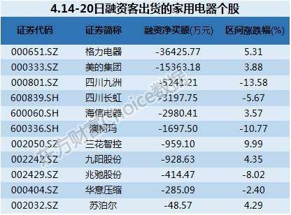 家電板塊方面,龍頭股遭融資客出貨的跡象更為明顯,格力電器和美的集團凈賣出額列第一和第二,分別遭凈賣出3.64億元和1.54億元;另外海信電器、九陽股份、蘇泊爾等家電龍頭也遭凈賣出。