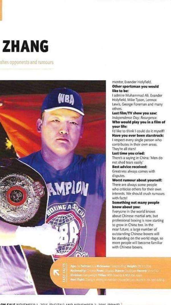 作為第一位殺進世界重量級頂端的黃種人,張君龍正在得到越來越多的權威媒體所投來的關注目光。2016年,擁有百年歷史的英國《拳擊新聞》雜志刊登了張君龍專訪,“龍王”成為登上該雜志的中國第一人;隨后,英國體育門戶《天空體育》又將張君龍評選為當今五大最具潛力重量級選手。不難看出,16戰(zhàn)全勝16次KO的張君龍已在現(xiàn)代拳擊發(fā)源地英國受到廣泛關注,而這同時也是對“龍王”非凡實力的最佳認可。