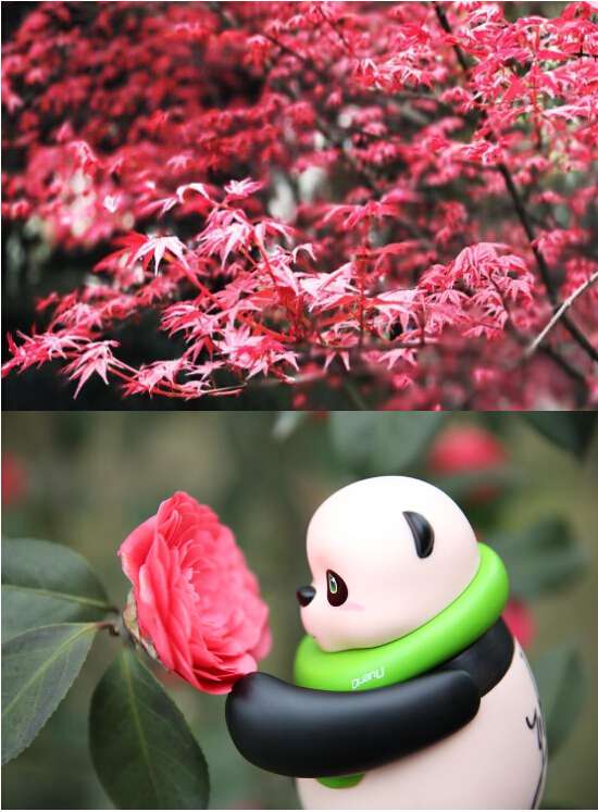 全友家居吉祥物熊貓“友友”也萌動登場,像是一同觀景賞花的游人,與百花親密互動。