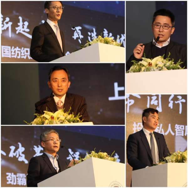 中國紡織工業(yè)聯(lián)合會陳大鵬副會長(左上)、上海經(jīng)信委都市產(chǎn)業(yè)處宋曉輝處長(左中)、勁霸男裝董事長洪忠信(左下)、