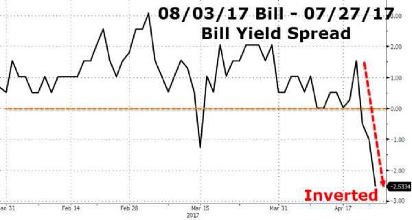 與此同時,美國短期國債(Bill)的利差卻呈現(xiàn)倒掛現(xiàn)象,顯示超短期的國債收益率更高,反映出市場依舊擔(dān)心周五的預(yù)算支出提案能否通過,以及美國下半年的債務(wù)上限問題能否解決。