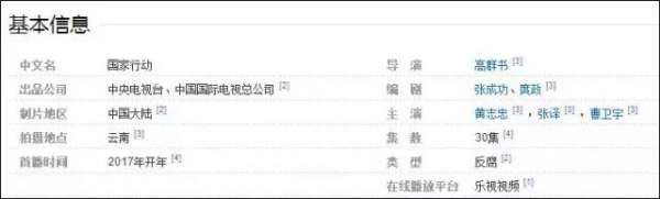《國家行動》原計劃作為2017年的開年大戲登陸央視一套黃金檔,但臨時被換。有消息稱,《國家行動》目前正處在補拍和后期制作階段,不出意外的話,將很快與全國觀眾見面。