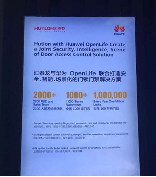 會上,匯泰龍智能事業(yè)部總經(jīng)理黎宇表示,智能門鎖作為智慧家庭的第一道安防屏障,對智慧家庭生態(tài)來說至關(guān)重要。作為行業(yè)知名的智能生活五金品牌,匯泰龍擁有二十年的產(chǎn)品研發(fā)設(shè)計與制造能力,在全國范圍內(nèi)建立1000多家專賣店,幾千個營銷網(wǎng)點,擁有完善的銷售網(wǎng)絡(luò);華為擁有強(qiáng)大的云服務(wù),并在管道建設(shè)與運(yùn)營、系統(tǒng)集成方面頗有建樹。此次合作,通過結(jié)合雙方各自的強(qiáng)項,聯(lián)合打造門鎖門禁解決方案,共建智慧家庭生態(tài),將為用戶帶來更便捷的服務(wù)和更舒適的體驗。