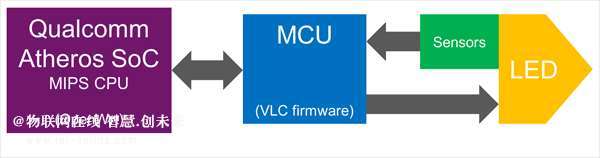 主要的計(jì)算模塊將基于MIPS的Qualcomm Atheros SoC和內(nèi)置802.11 g / n Wi-Fi、20 GPIO引腳及UART端口集成在一起。此SoC已使用在很多電子愛好者的方案及運(yùn)行OpenWrt的機(jī)器人應(yīng)用程序中——智能燈泡也不例外。OpenWrt是嵌入式Linux的發(fā)行版,用于優(yōu)化網(wǎng)絡(luò)設(shè)備和附帶完整Wi-Fi堆棧的產(chǎn)品,其可提供一個完整的VLC傳輸層。
