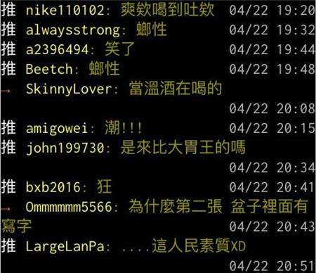 “螂性!”(PTT中用來嘲諷生活習(xí)慣不好或不擇手段的大陸人)“是來比大胃王的嗎?”“這人民素質(zhì)”……
