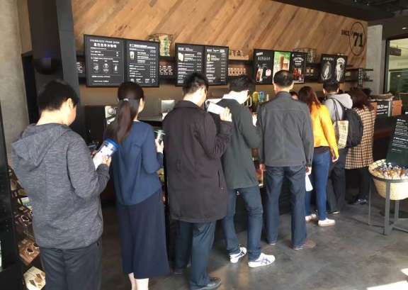 4月22日上午,成都星巴克遠(yuǎn)洋太古里旗艦店里,磨豆機(jī)在飛速地旋轉(zhuǎn),身為店副理的肖凱迪也一直處于忙碌的狀態(tài)之中,微笑著為有序排隊(duì)的自帶杯顧客快速遞上一杯又一杯的新鮮滴濾咖啡……