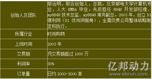D1優(yōu)尚網(wǎng)成立于2003年,是知名時尚B2C網(wǎng)站,主要經(jīng)營服裝、化妝品、飾品、家居等商品。目前,D1優(yōu)尚網(wǎng)的月銷售額超1000萬元。