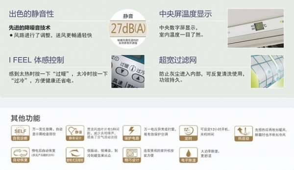 【家電沸騰恵】出色的靜音性!I FEEL體感控制,健康更省電!中央屏溫度顯示,室溫一目了然!超寬過濾網(wǎng),防塵更清潔!