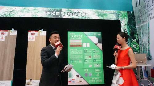 主持人介紹冠軍磁磚“負(fù)離子緩釋技術(shù)”