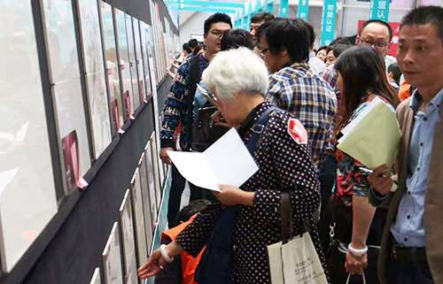 消費(fèi)者圍觀選購(gòu)“森林浴II”系列磁磚