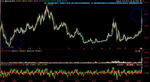 在2017年,海螺水泥又迎來高位減持冀東水泥的好時機。在近期雄安概念股的爆炒下,水泥板塊的股票飆升,一度表現(xiàn)十分強勁。而冀東水泥也備受關(guān)注,曾經(jīng)有過6個“一”字漲停。
