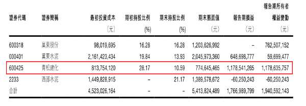 海螺水泥2016年的年報顯示,截至2016年底,海螺水泥除持有上述3支股票外,還持有21.17%的西部水泥。