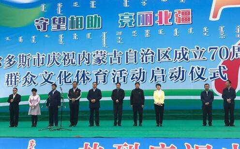 市委常委、宣傳部長蘇翠芳在儀式上表示,今年是內(nèi)蒙古自治區(qū)成立70周年,這是全區(qū)各族人民政治生活中的一件大事,全區(qū)上下將舉辦各種慶祝活動(dòng)。廣泛開展群眾性文化體育活動(dòng),是鄂爾多斯迎慶活動(dòng)的重要內(nèi)容。這些活動(dòng)的開展,對(duì)于充分展示70年來我市經(jīng)濟(jì)社會(huì)發(fā)展取得的巨大成就和歷史性變化,弘揚(yáng)中國共產(chǎn)黨好、社會(huì)主義好、改革開放好、偉大祖國好、民族團(tuán)結(jié)好的主旋律,激勵(lì)和動(dòng)員全市各族人民群眾積極投身到鄂爾多斯全面建成較高質(zhì)量小康社會(huì)的偉大事業(yè)具有深遠(yuǎn)意義。希望廣大市民朋友能夠積極參與各項(xiàng)活動(dòng),在歡樂祥和的迎慶氛圍中,共享70年來,特別是黨的十八大以來,內(nèi)蒙古自治區(qū)和鄂爾多斯市改革發(fā)展的新成果。