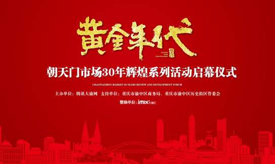 在朝天門市場開市30年之際,正值提檔升級的大背景下,2017年4月24日,由騰訊大渝網(wǎng)主辦,渝中區(qū)歷史街區(qū)管委會,渝中區(qū)商務(wù)局協(xié)辦的,“黃金年代——朝天門市場30年輝煌系列活動”將在海航保利5樓會議中心盛大啟幕,屆時將有10余位來自政府,國內(nèi)行業(yè),市場的權(quán)威專家和商業(yè)精英代表出席峰會,與商戶、創(chuàng)業(yè)者面對面交流,在重慶向國際化都市邁進的大機遇下,共同探討關(guān)于朝天門的發(fā)展與革新。