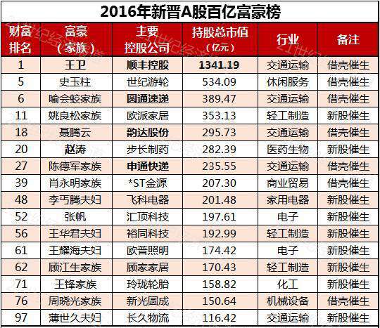 ★ 三安光電林秀成家族 林秀成,泉州安溪人,三安光電董事長,他早年涉足過鋼鐵、茶葉、房地產(chǎn),但最終在光電產(chǎn)業(yè)獲得了巨大成功。三安光電由林氏家族掌控,除了董事長林秀成,還有其長子林志強(qiáng)、女婿林科闖等。2008年,三安光電借殼上市,隨后股價(jià)一路走高,公司規(guī)模不斷壯大,目前已是一家市值超百億的大公司。憑借這一“光電神話”,林秀成本人也成為“LED大王”。在2016年10月發(fā)布的《2016碧桂園森林城市·胡潤百富榜》中,林秀成、林志強(qiáng)父子以240億元位居第74名。而在2017年3月7日發(fā)布的《2017胡潤全球富豪榜》中,也有他們的身影。據(jù)悉,林秀成和林志強(qiáng)或間接持有三安光電股權(quán)超過37%。 關(guān)于三安光電,最近業(yè)內(nèi)比較關(guān)注的是其在植物工廠方面的動(dòng)作。2015年12月,中科院植物研究所與福建三安集團(tuán)共同發(fā)起成立了高科技創(chuàng)新型企業(yè)——中科三安,利用植物所于植物科學(xué)領(lǐng)域的研發(fā)優(yōu)勢,結(jié)合三安集團(tuán)旗下核心企業(yè)三安光電領(lǐng)先的LED光源技術(shù),進(jìn)行光生物技術(shù)產(chǎn)業(yè)轉(zhuǎn)化。去年6月,中科三安運(yùn)用自有知識(shí)產(chǎn)權(quán)技術(shù),在湖頭光電產(chǎn)業(yè)園建成了目前世界上單體最大的10萬級潔凈度的全人工光型植物工廠。不過,林秀成并不滿足當(dāng)下全球最大的植物工廠地位。他還將在安溪縣城建設(shè)占地200畝的企業(yè)總部暨植物工廠研究院,總投資70億。 4月12日,三安光電發(fā)布2016年年報(bào),公司2016年1—12月實(shí)現(xiàn)營業(yè)收入62.73億元,同比增長29.11%,光學(xué)光電子行業(yè)營業(yè)平均收入增長率為23.72%;歸屬于上市公司股東的凈利潤21.67億元,同比增長27.86%,光學(xué)光電子行業(yè)平均凈利潤增長率為39.86%。 4月24日,三安光電發(fā)布2017年一季報(bào),公司2017年1—3月實(shí)現(xiàn)營業(yè)收入19.90億元,同比增長68.9%,光學(xué)光電子行業(yè)平均營業(yè)收入增長率為23.72%;歸屬于上市公司股東的凈利潤6.91億元,同比增長51.14%,光學(xué)光電子行業(yè)平均凈利潤增長率為37.67%。公司表示,報(bào)告期內(nèi),LED需求旺盛,公司主要設(shè)備MOCVD除研發(fā)機(jī)臺(tái)外已開滿,致使公司2017年第一季度實(shí)現(xiàn)的歸屬于母公司所有者主營業(yè)務(wù)凈利潤比上年同期有較大幅度增長。 值得一提的是,4月1日,在Wind資訊最新統(tǒng)計(jì)“中國上市企業(yè)市值500強(qiáng)”榜單中顯示,2017年一季度,三安光電位列第137位,排名上升了23名,超過恒安國際成為市值第一的泉籍企業(yè)。據(jù)Wind資訊“2016中國上市企業(yè)市值500強(qiáng)”榜單顯示,三安光電市值為546億元,而2017年一季度三安光電市值達(dá)到652億元! ★ 王耀海夫婦 據(jù)統(tǒng)計(jì),這110位百億富豪榜中,新晉百億富豪有16位,其中包括歐普照明王耀海、馬秀慧夫婦,他們以174.42億元的持股市值位列61名。