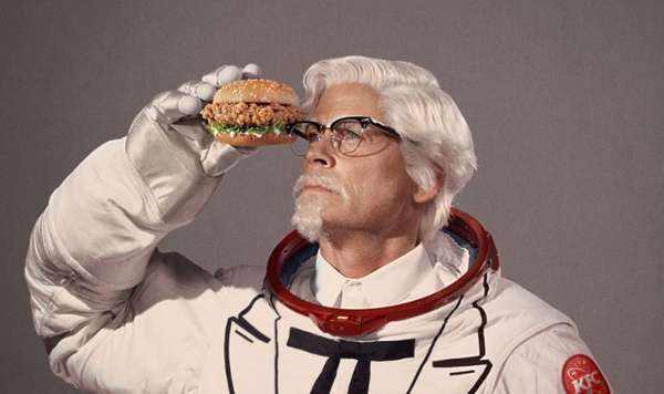 今年4月,肯德基還來了一次上校太空營銷。在廣告片中,由 Rob Lowe 扮演的山德士上校要將肯德基的照片香辣雞腿堡送上太空,成為宇宙最好吃的漢堡。