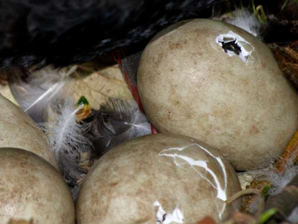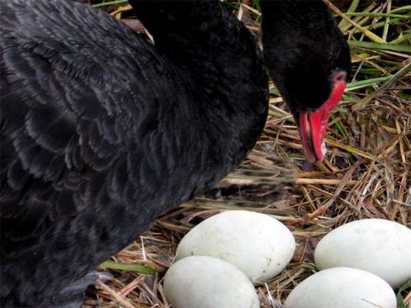 3月21日,公園的兩只恩恩愛愛的黑天鵝終于有了愛的結(jié)晶,雌鵝在當(dāng)天產(chǎn)下第一只蛋,隨后的一周時(shí)間里先后生下了“四胞胎”。