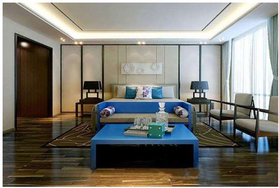 選用具有文化屬性的顏色,可以凸顯主人品味、臥室中可以選用麻灰色作為過(guò)渡,要注意與主體色的協(xié)調(diào)一致。對(duì)于地面木地板的選擇安信地板推薦二翅豆實(shí)木地板、香脂木豆等都是一些非常適宜的地板。