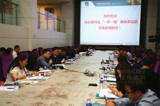 \u00A0 \u00A0中國陶瓷網(wǎng)訊 2017年4月12日上午,由中共中央宣傳部組織并帶隊(duì)的來自人民日報(bào)、新華社等60多家媒體記者組成的大型采訪團(tuán)走進(jìn)蒙娜麗莎集團(tuán),就企業(yè)“一帶一路”建設(shè)進(jìn)行深入采訪。集團(tuán)副董事長霍榮銓、董事張旗康等相關(guān)人員進(jìn)行了接待。今年5月14-15日,“一帶一路”國際合作高峰論壇將在北京隆重舉行,這是迄今為止最規(guī)格的“一帶一路”論壇活動(dòng)。3年多來,已有100多個(gè)國家和國際組織響應(yīng)“一帶一路”倡議,40多個(gè)國家和國際組織同中國簽署了合作協(xié)議。