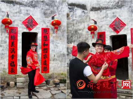 齊魯晚報訊 不知道各位還記得這位叫做愛德華的英國小伙兒嗎?5月5日,在江西省婺源縣思溪村修舊如舊的“婚房”里,第一次穿上中式喜服的他掀起了中國新娘的紅蓋頭。
