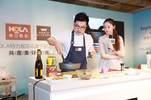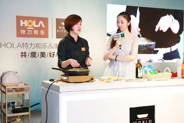 滬上人氣星廚“料理小熊”親臨現(xiàn)場,分別用Visions晶彩透明鍋和Swiss Diamond瑞仕鉆鍋分別烹飪火焰蝦和藍帶雞排,展現(xiàn)出康寧鍋具的優(yōu)良性能。不僅如此,HOLA特力和樂餐廚達人徐虹霞女士用HOLA的STONE史東不粘導(dǎo)磁煎鍋制作荷蘭松餅,并邀請現(xiàn)場嘉賓上演 “餐盤上的美食藝術(shù)”,用HOLA的餐具等進行互動擺盤,為美食錦上添花,提升藝術(shù)美感,別有一番趣味。