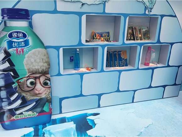 雀巢優(yōu)活兒童水,選用了8個(gè)動(dòng)畫形象,包括:棉尾兔朱迪、赤狐尼克、樹懶閃電、獅市長(zhǎng)、綿羊副市長(zhǎng)、獵豹本杰明警官、耳廓狐芬尼克以及大明星瞪羚夏奇羊