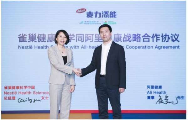 雀巢健康科學(xué)總經(jīng)理顧欣鑫(左)和阿里健康董事康凱(右)簽署戰(zhàn)略合作協(xié)議